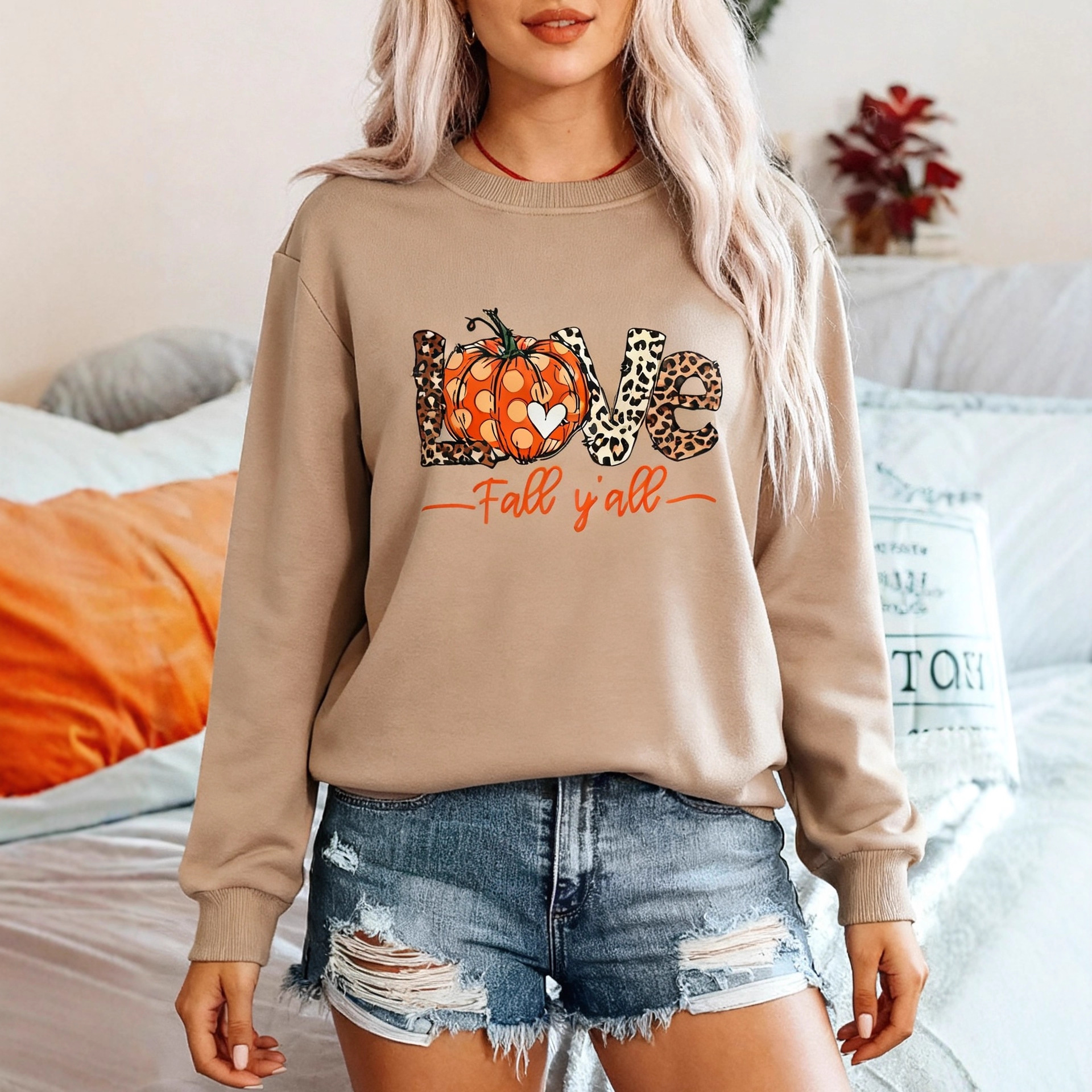 欧美跨境2025新款万圣节装扮南瓜印花卫衣圆领长袖套头衫女装秋冬