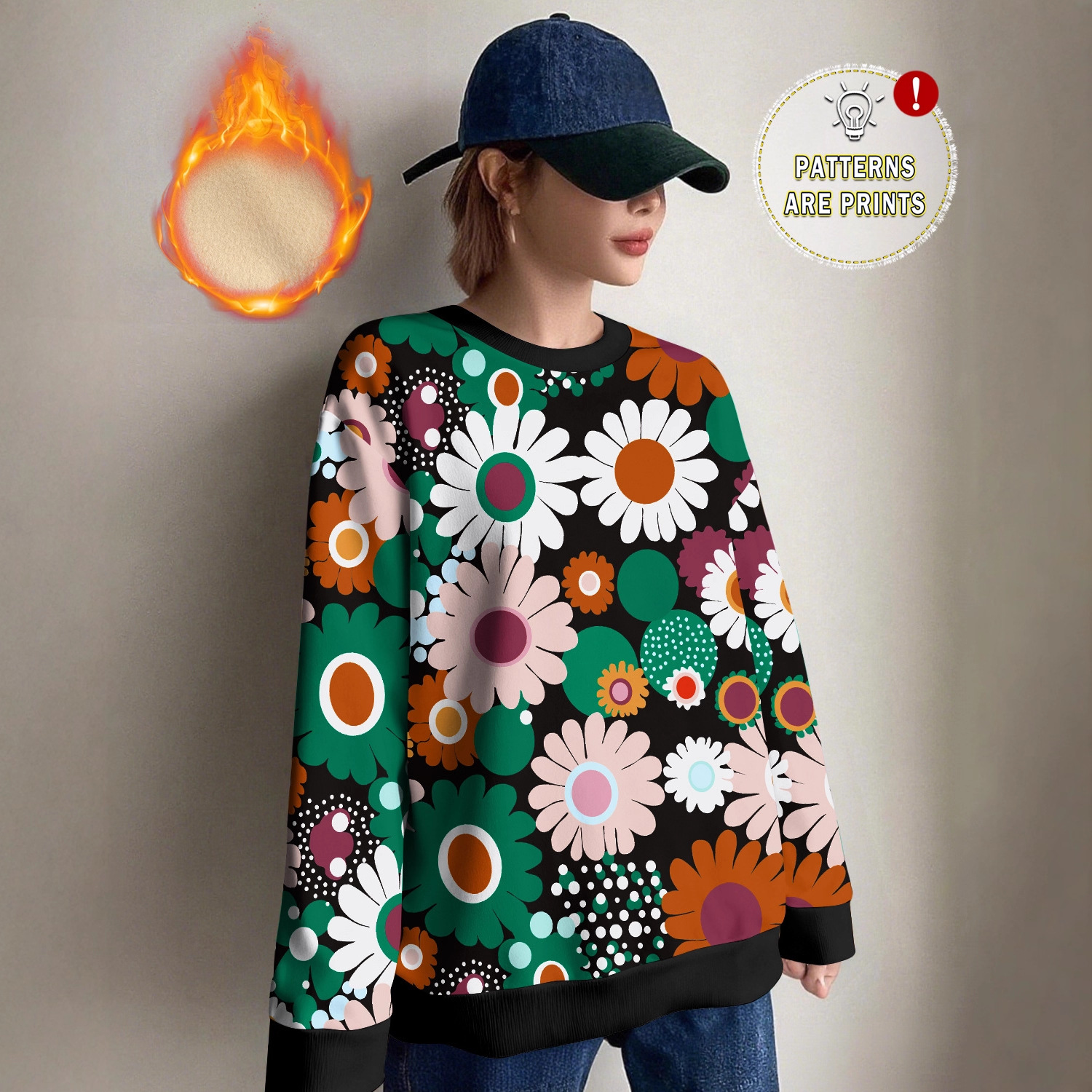 跨境欧美新款女装圆领卫衣雏菊印花图案休闲宽松卫衣女外套女秋