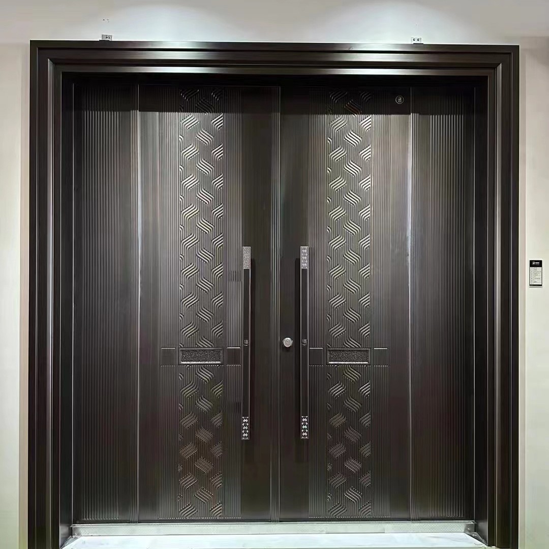 供应自建房别墅大门铸铝装甲门双开安全进户门入户庭院大门新中式