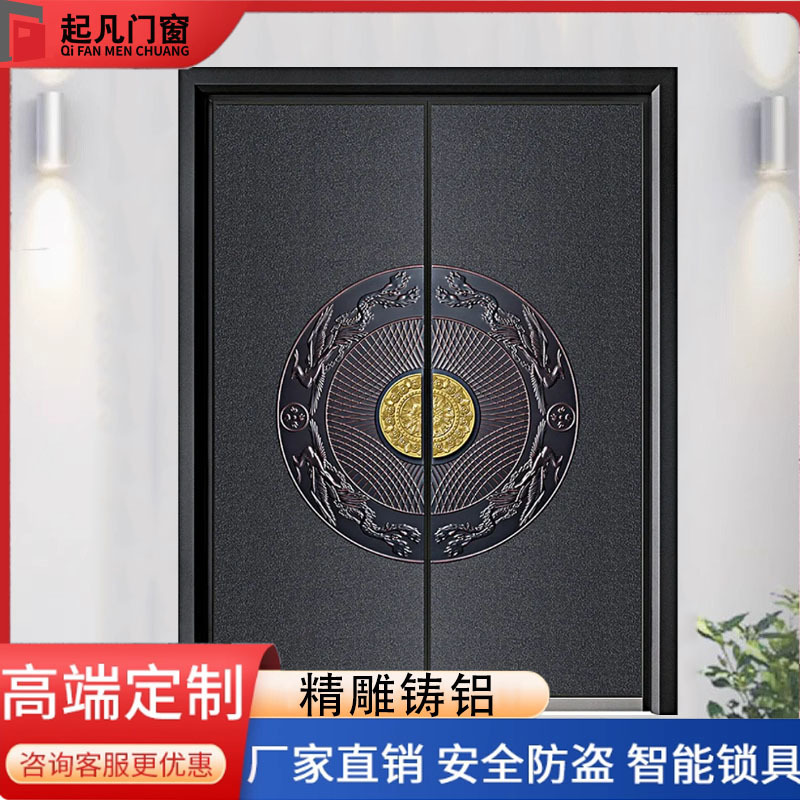 铸铝农村自建房大门别墅大门双开门入户子母进户对开精雕中式铝雕