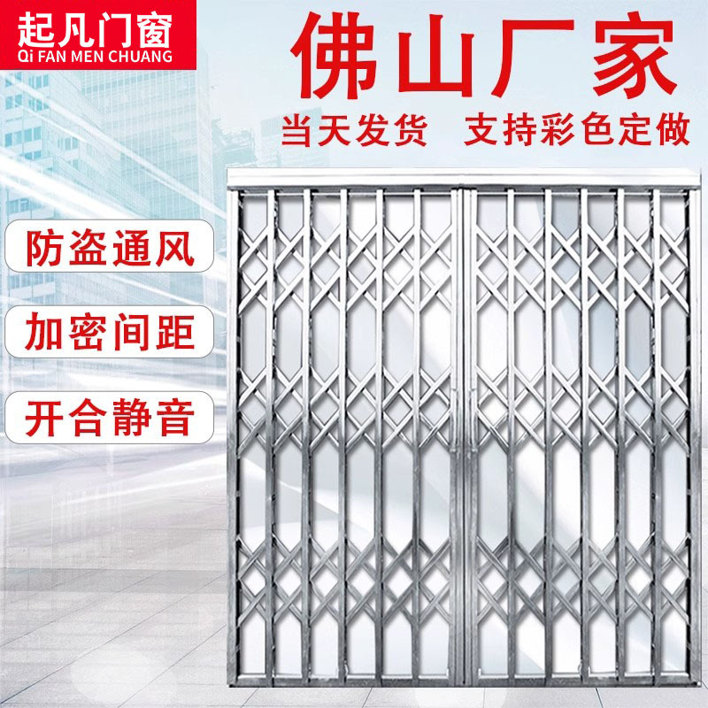 佛山不锈钢拉闸门伸缩折叠门推拉通风入户门拉闸防盗网阳台防护栏