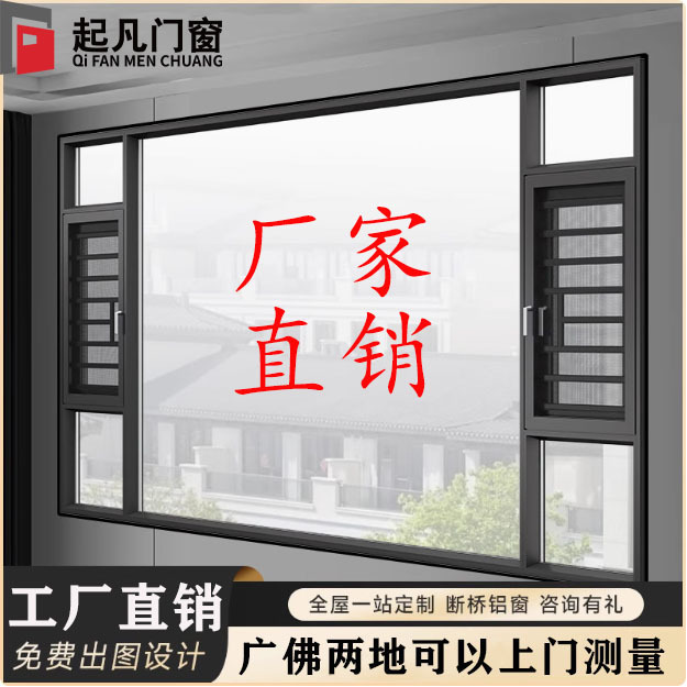 断桥铝门窗封阳台系统铝合金断桥窗平开窗落地推拉静音玻璃窗户