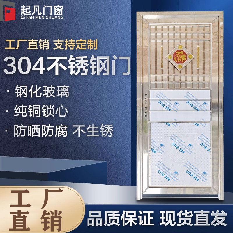 佛山304不锈钢入户门双开门农村自建房防盗入户门家用庭院门定制