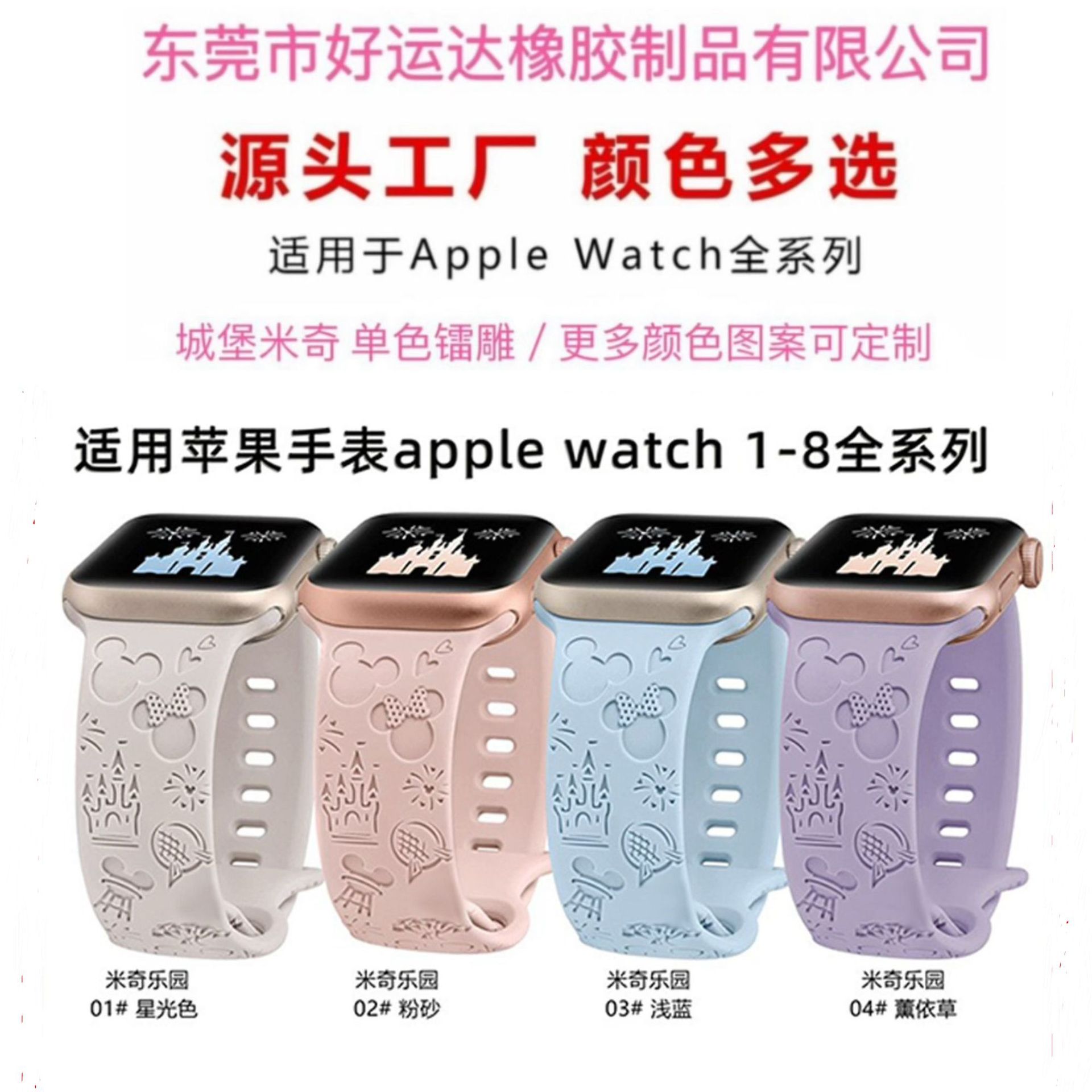 适用苹果AppleWatch/ultra硅胶雕花工艺城堡米奇款表带 单/双色