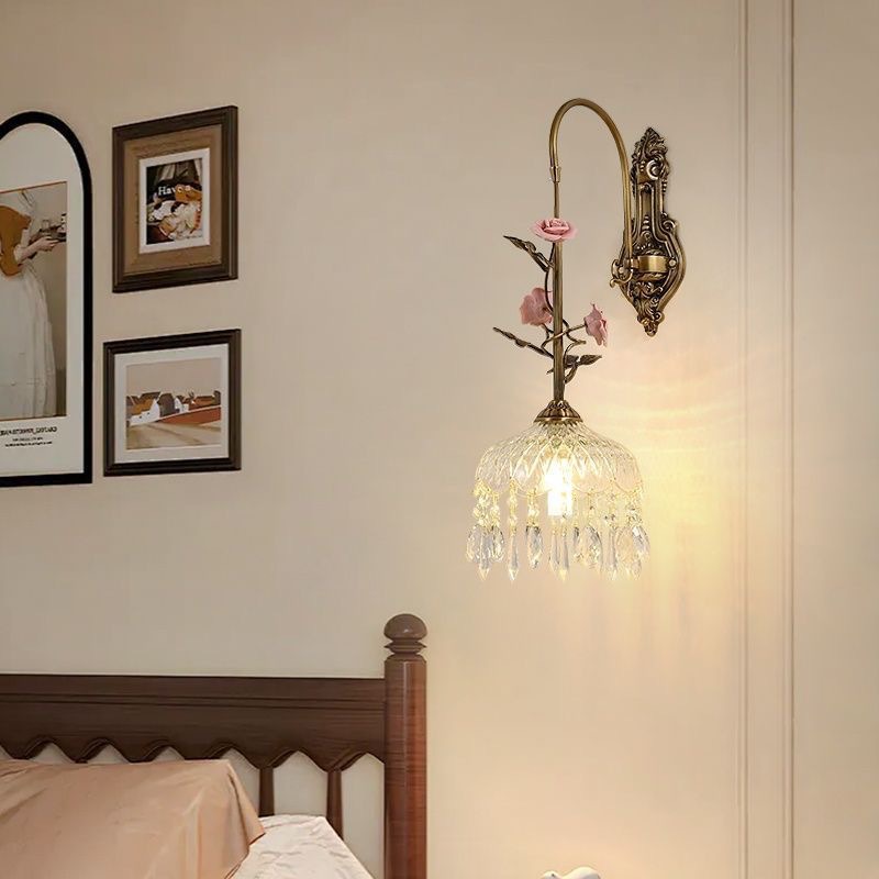 玫瑰花全铜灯法式中古风轻奢高级氛围感美式复古卧室床头装饰壁灯