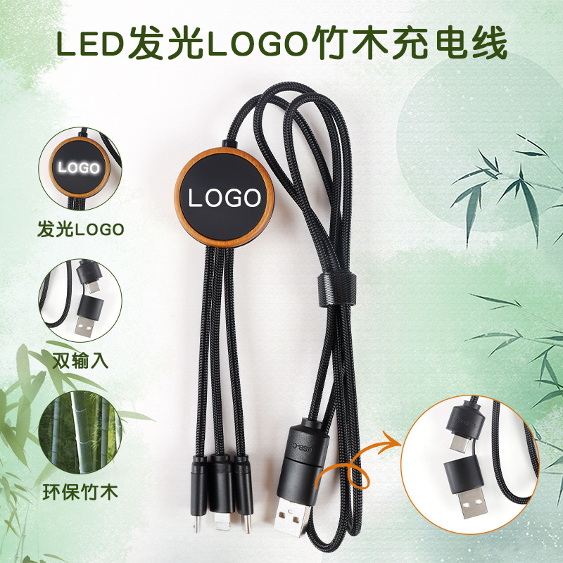 跨境创意竹子发光三合一数据线定 制logo环保钥匙扣三合一充电线