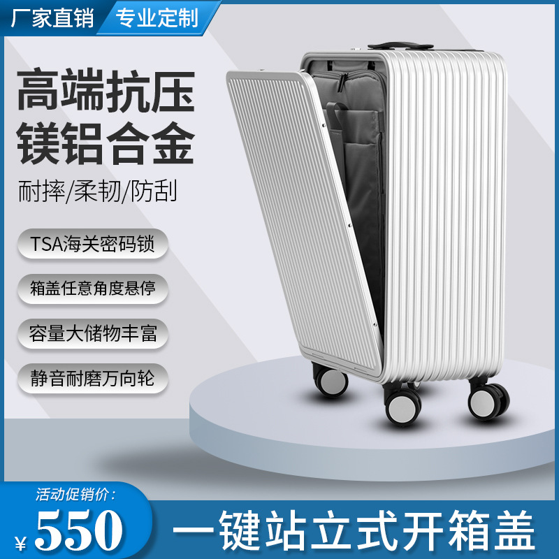 厂家批发定制全铝镁合金拉杆箱侧开17寸登机箱20寸24寸旅行箱前开