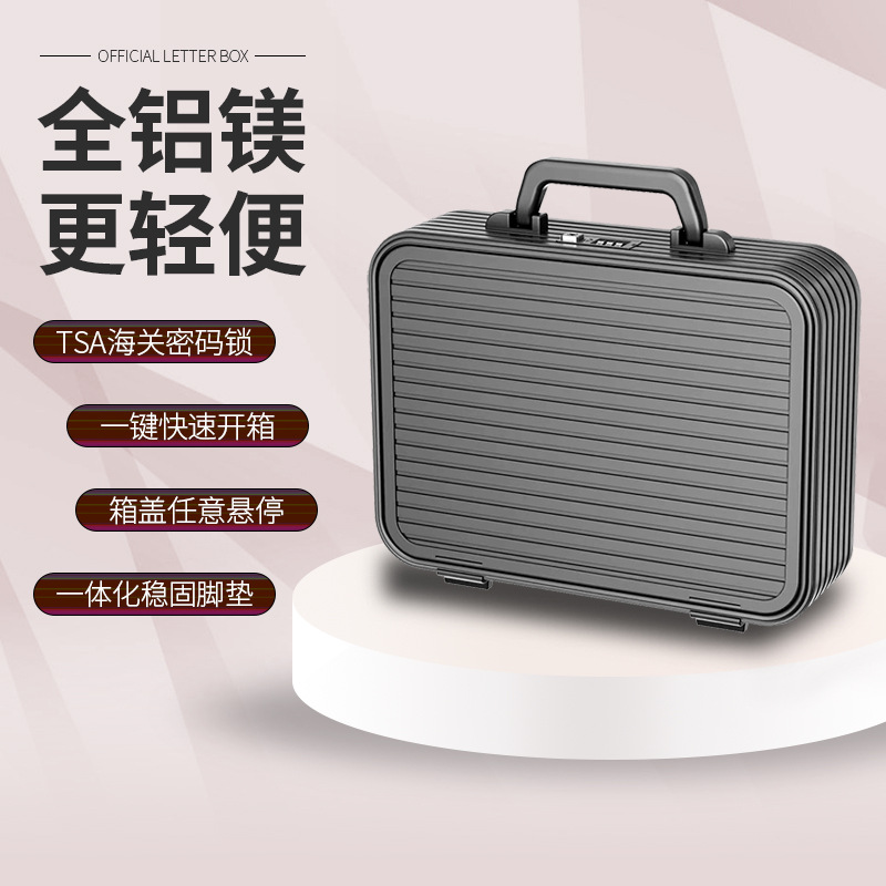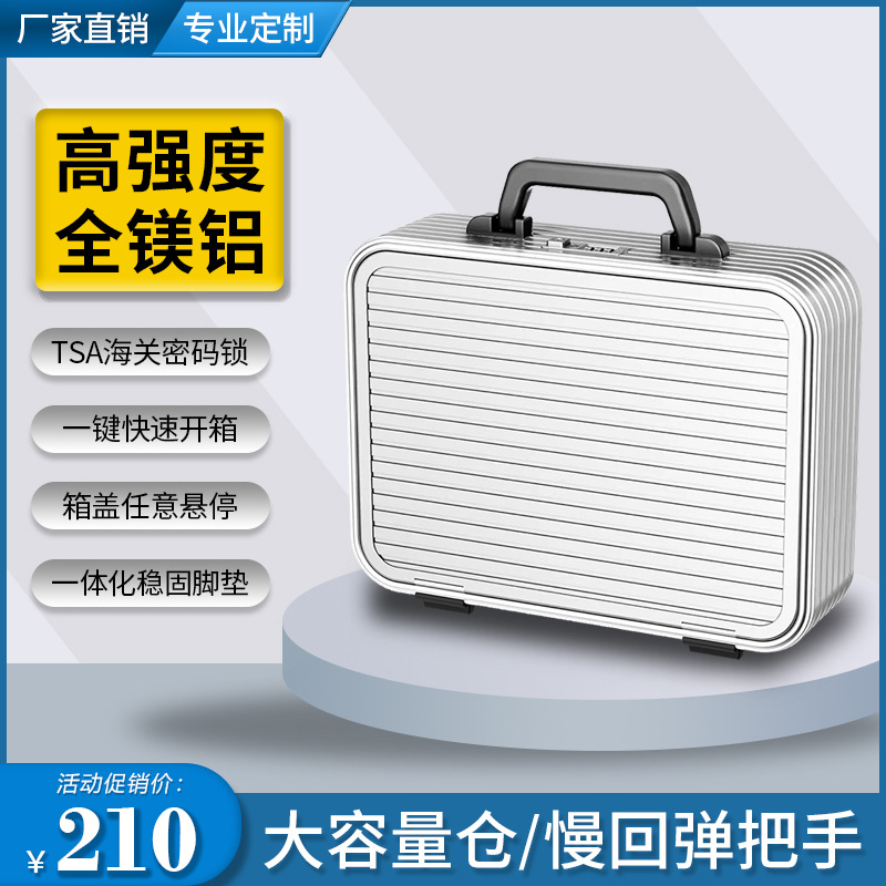 定制侧开盖全金属铝镁合金手提化妆箱公文箱仪器工具箱14寸16寸