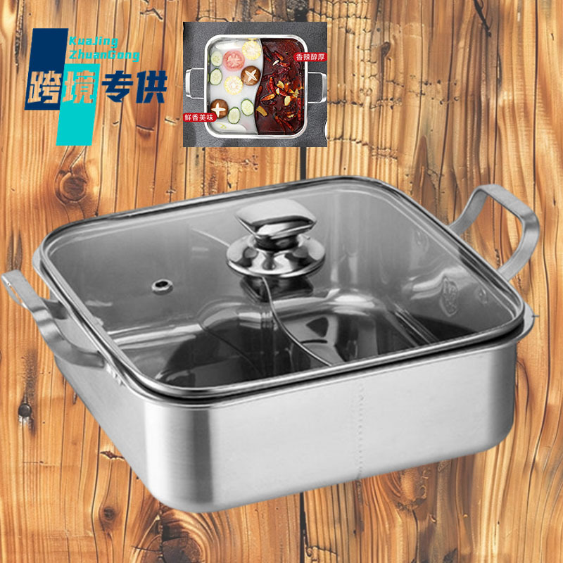 跨境304不锈钢方形型火锅盆一体鸳鸯专用锅懒人火锅底料多功能锅