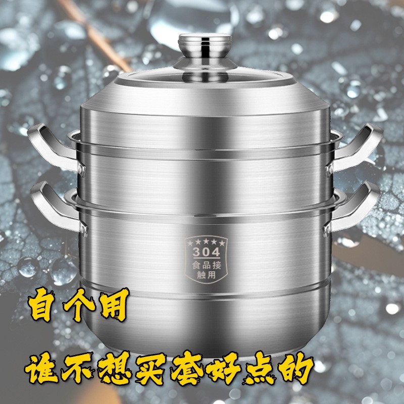 蒸锅304食品级家用不锈钢通用多层蒸锅不绣钢锅汤锅加厚活动礼盒