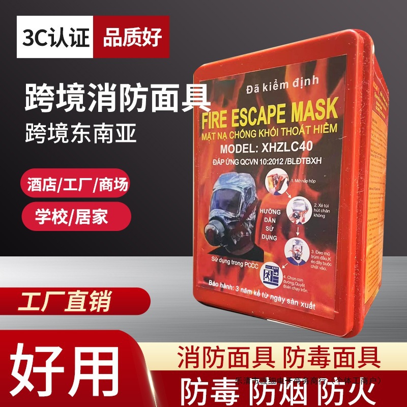 跨境消防火灾逃生面具出口消防面罩防毒防烟酒店过滤式自救呼吸器