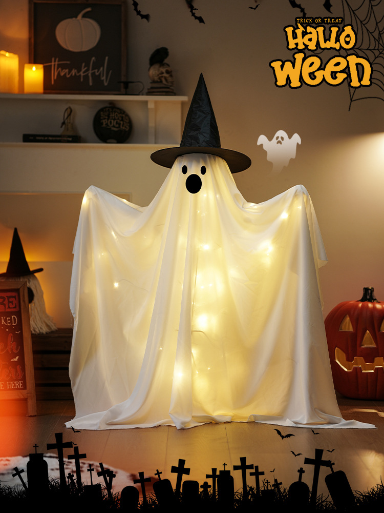 万圣节夜装饰品发光幽灵灯摆件酒吧门口氛围场景布置店铺拍照道具