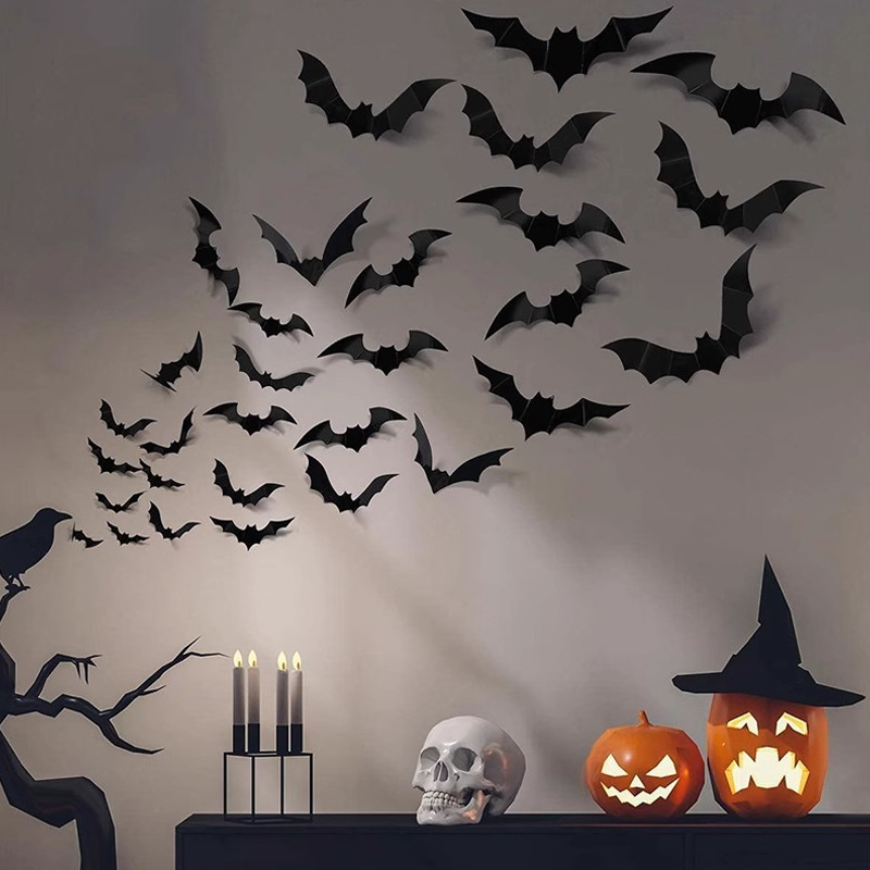 万圣节蝙蝠蜘蛛窗贴幼儿园教室商场橱窗装饰用品节日恐怖氛围布置