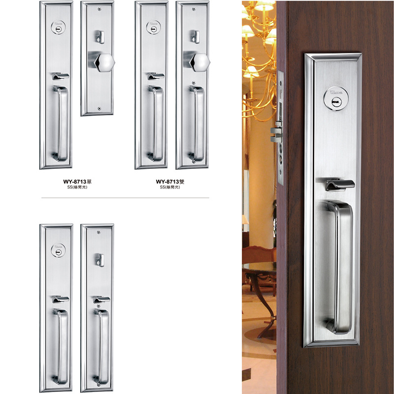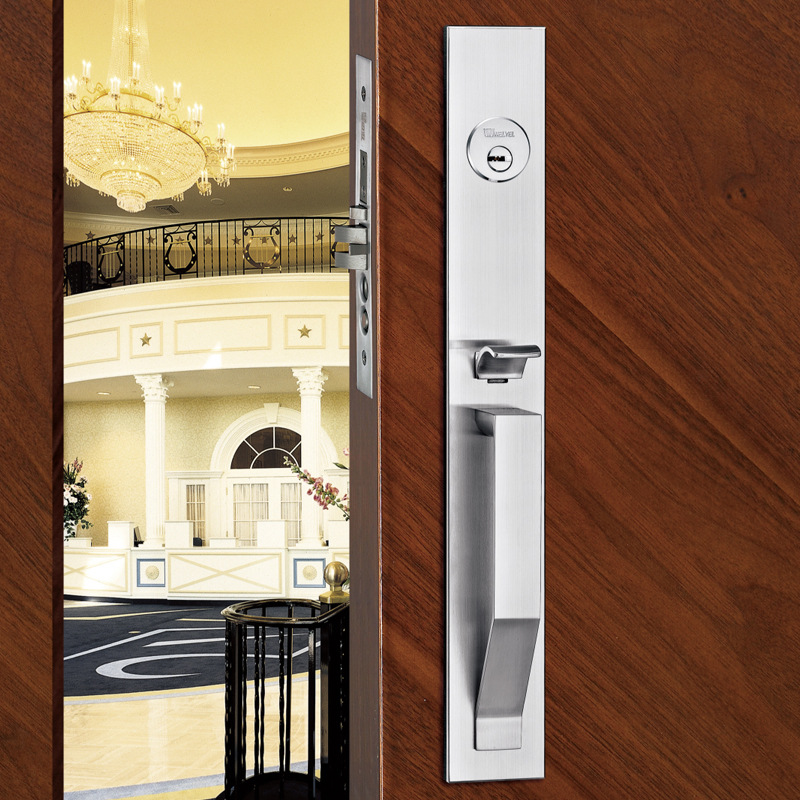不锈钢门锁家用通用型SUS304美式豪华大门锁对开门防盗中式把手