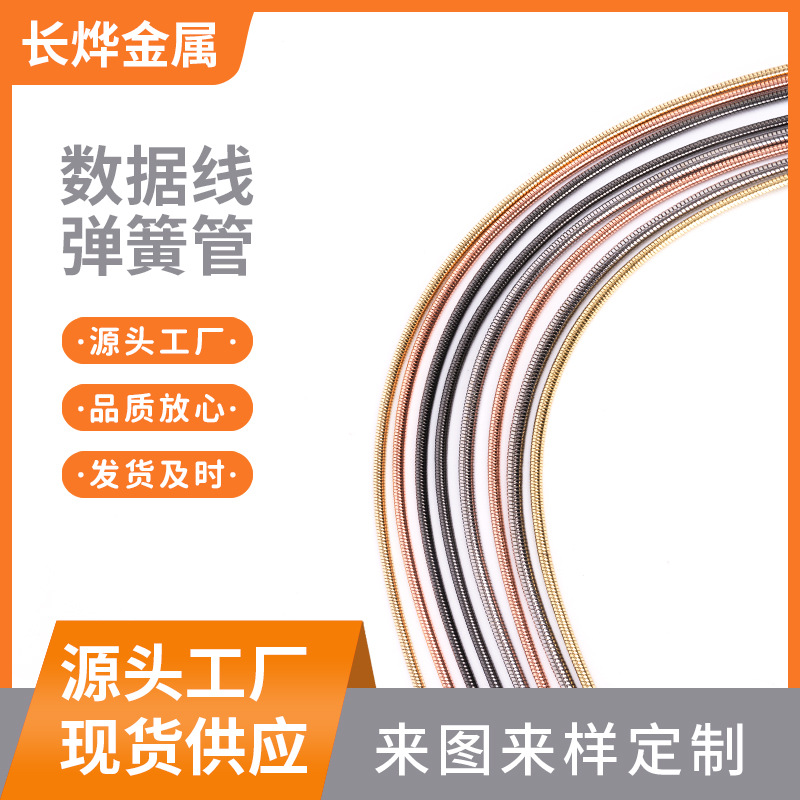 厂家供应数据线不锈钢软管多种长度充电线金属软管数据线弹簧套管