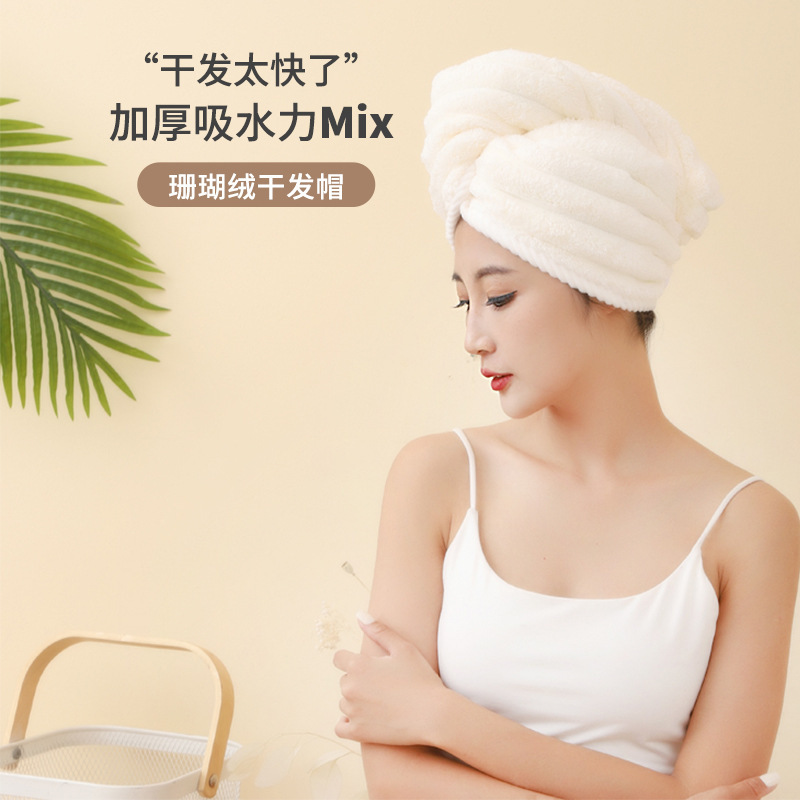 干发帽大直条绒浴帽珊瑚绒干发帽加厚女包头发毛巾浴帽女干发巾