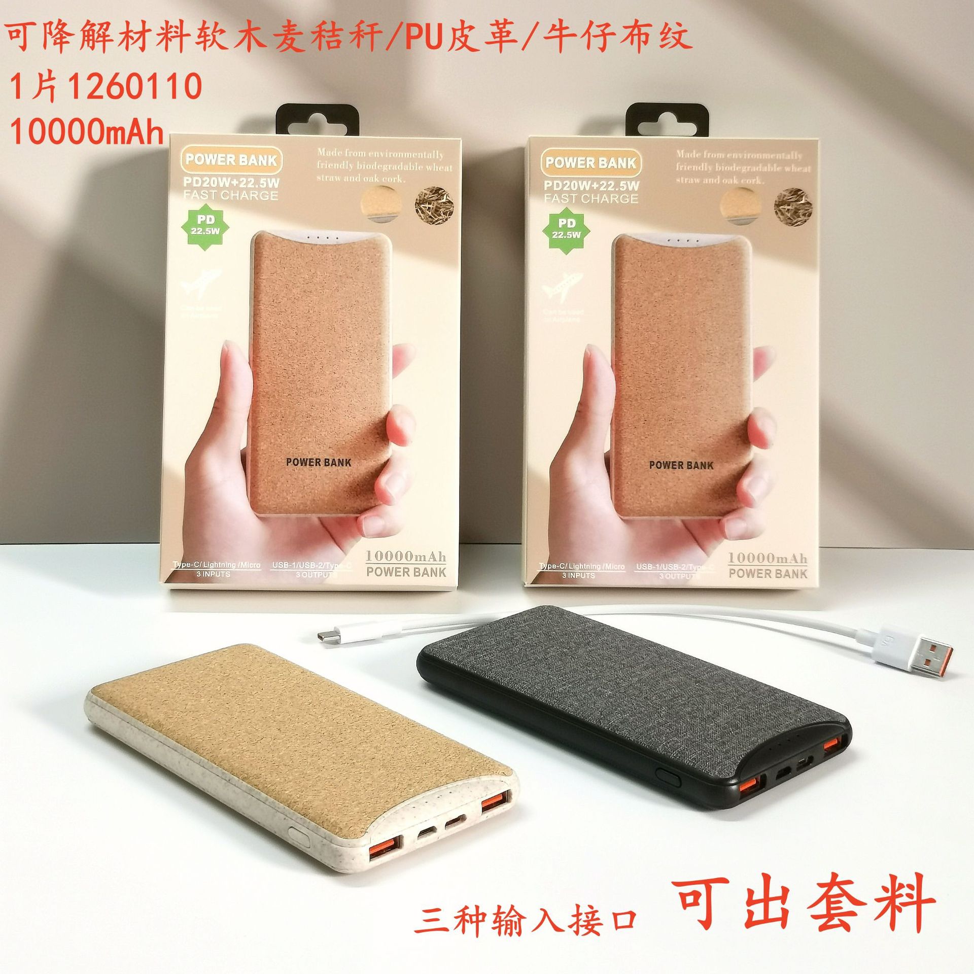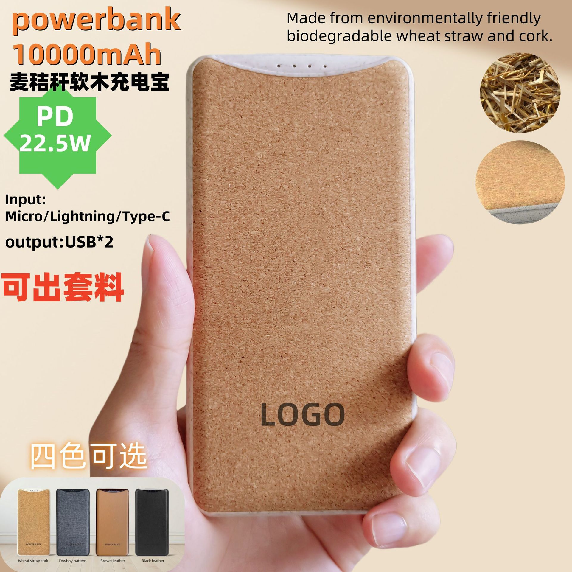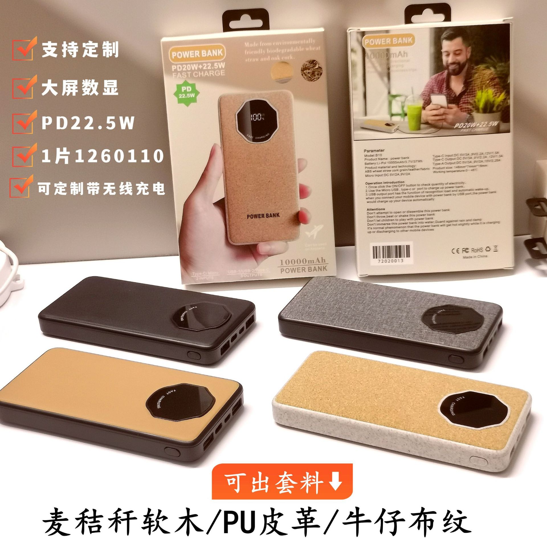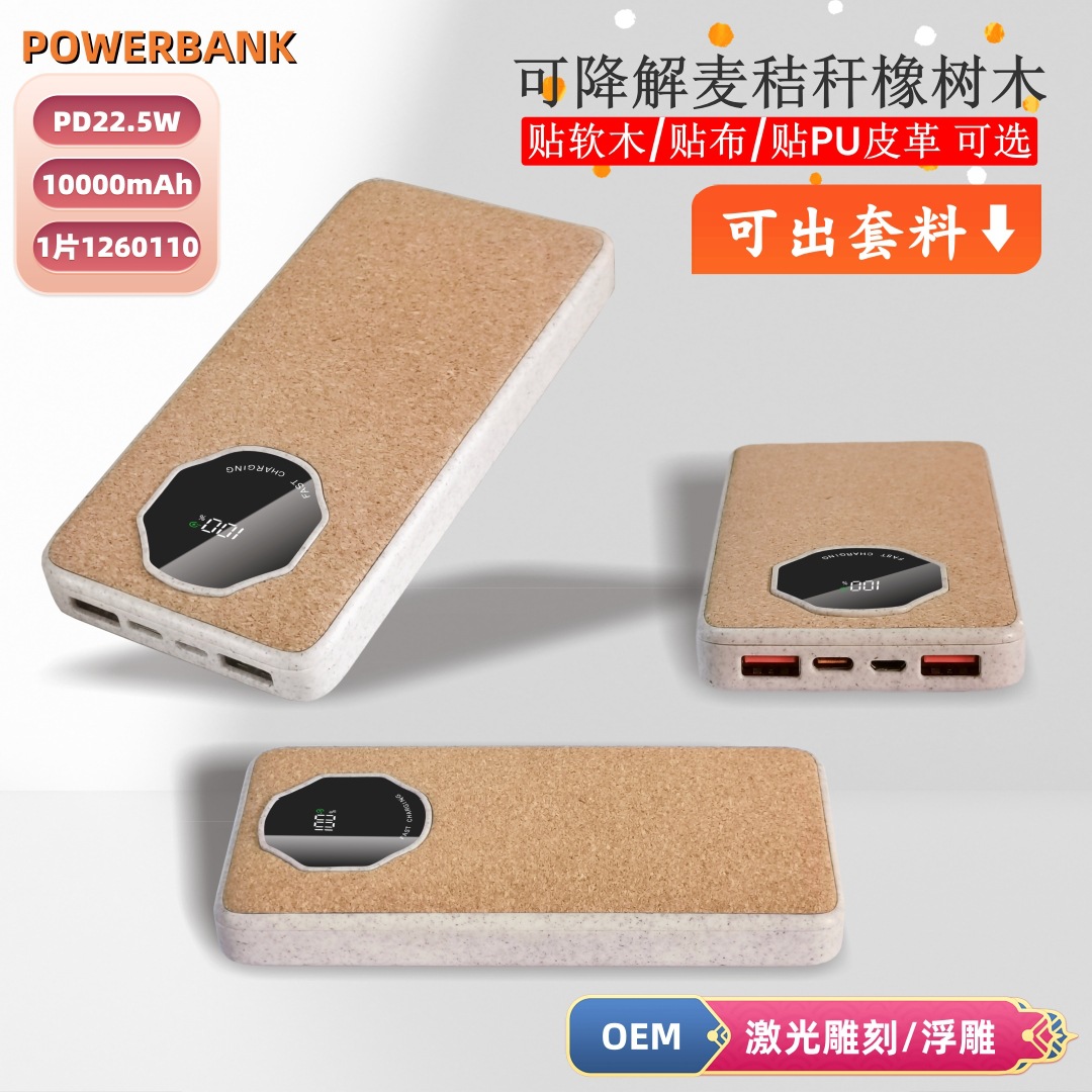 powerbank新款数显PD快充DIY可降解生物材料软木麦秸杆充电宝外壳