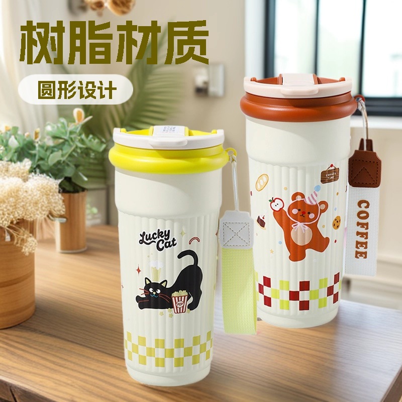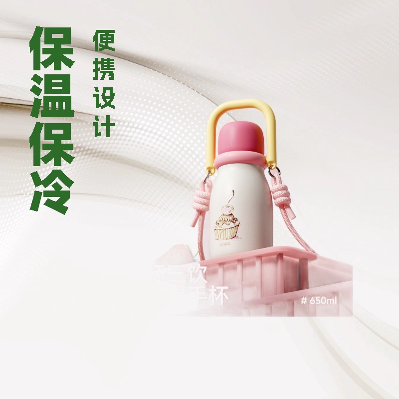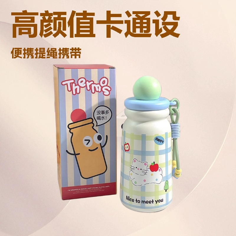 2025新款不锈钢高颜值大容量卡通保温杯女生便携可爱提绳吸管保温