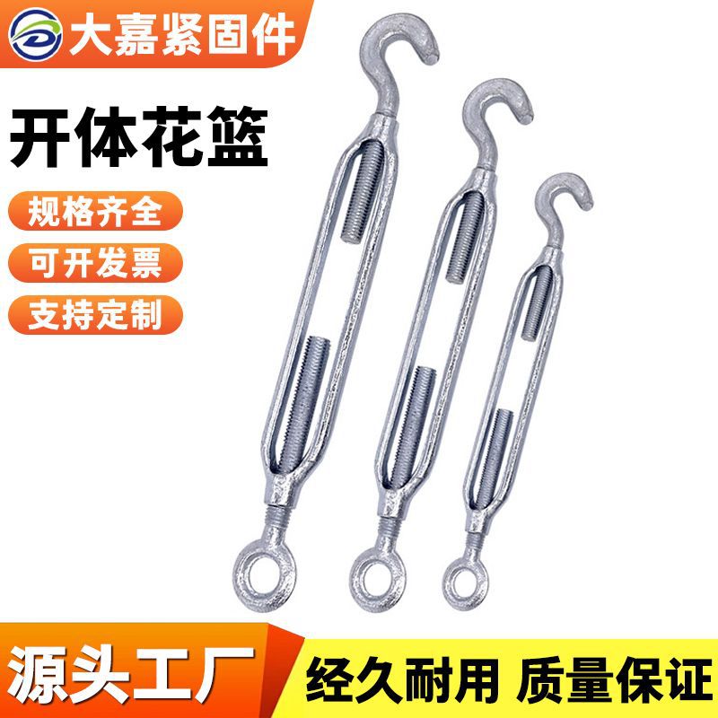 镀锌开体花篮螺丝连接拉紧收紧器伸缩螺栓紧绳器玛钢花兰双头螺栓