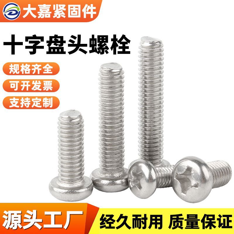 十字盘头螺栓 304不锈钢十字圆头螺丝机螺钉盘头加长全牙半牙螺丝