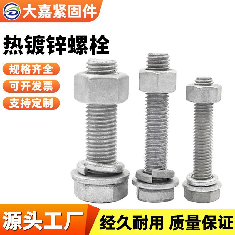 厂家现货热镀锌螺栓螺母热浸锌外六角螺丝光伏电力全扣螺杆