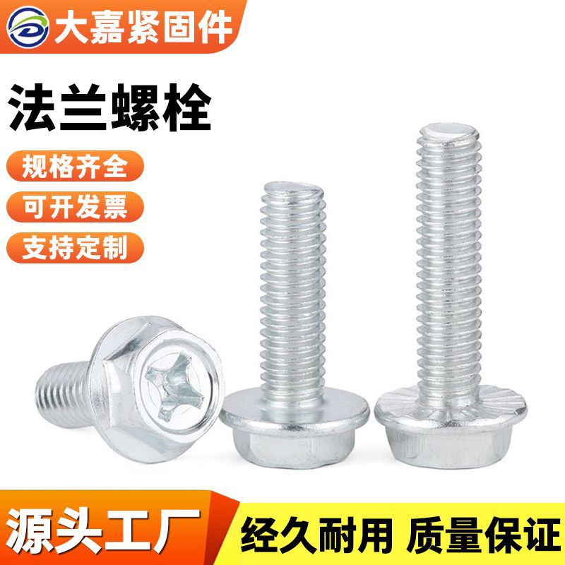 8.8级镀锌法兰螺栓碳钢全螺纹全牙半牙六角螺丝法兰供应法兰螺丝