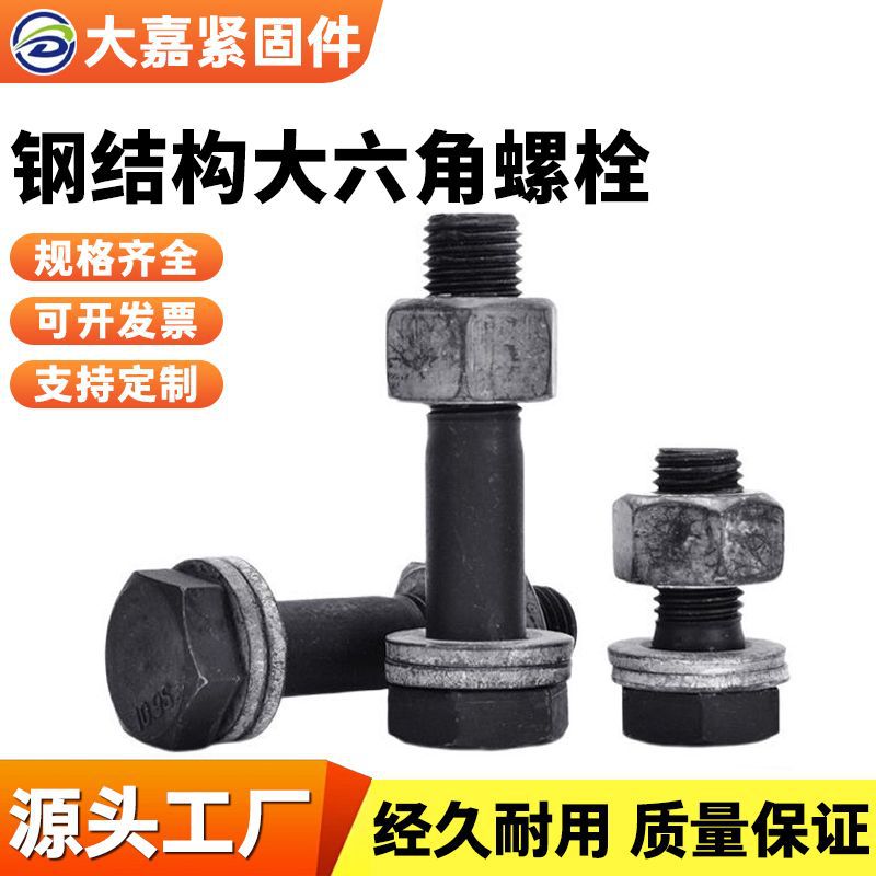 10.9级大六角钢结构螺栓高强度供应发黑高强度半螺纹连接六角螺丝