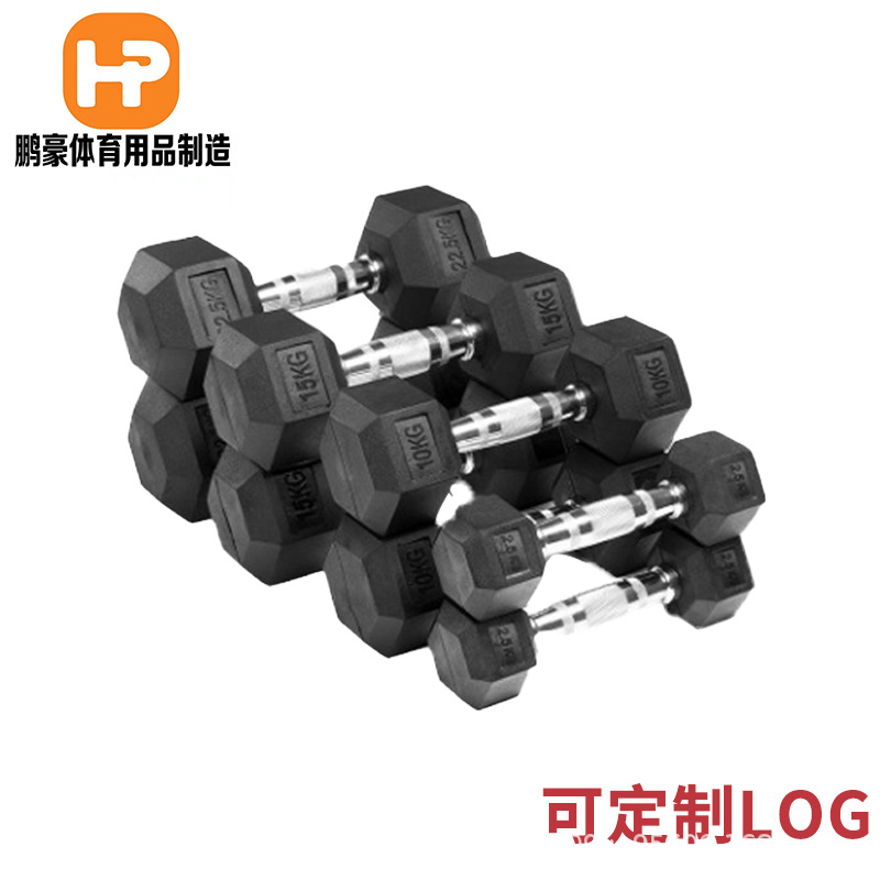 商用健身房哑铃固定包胶实心哑铃私教工作室健身器材六角包胶哑铃