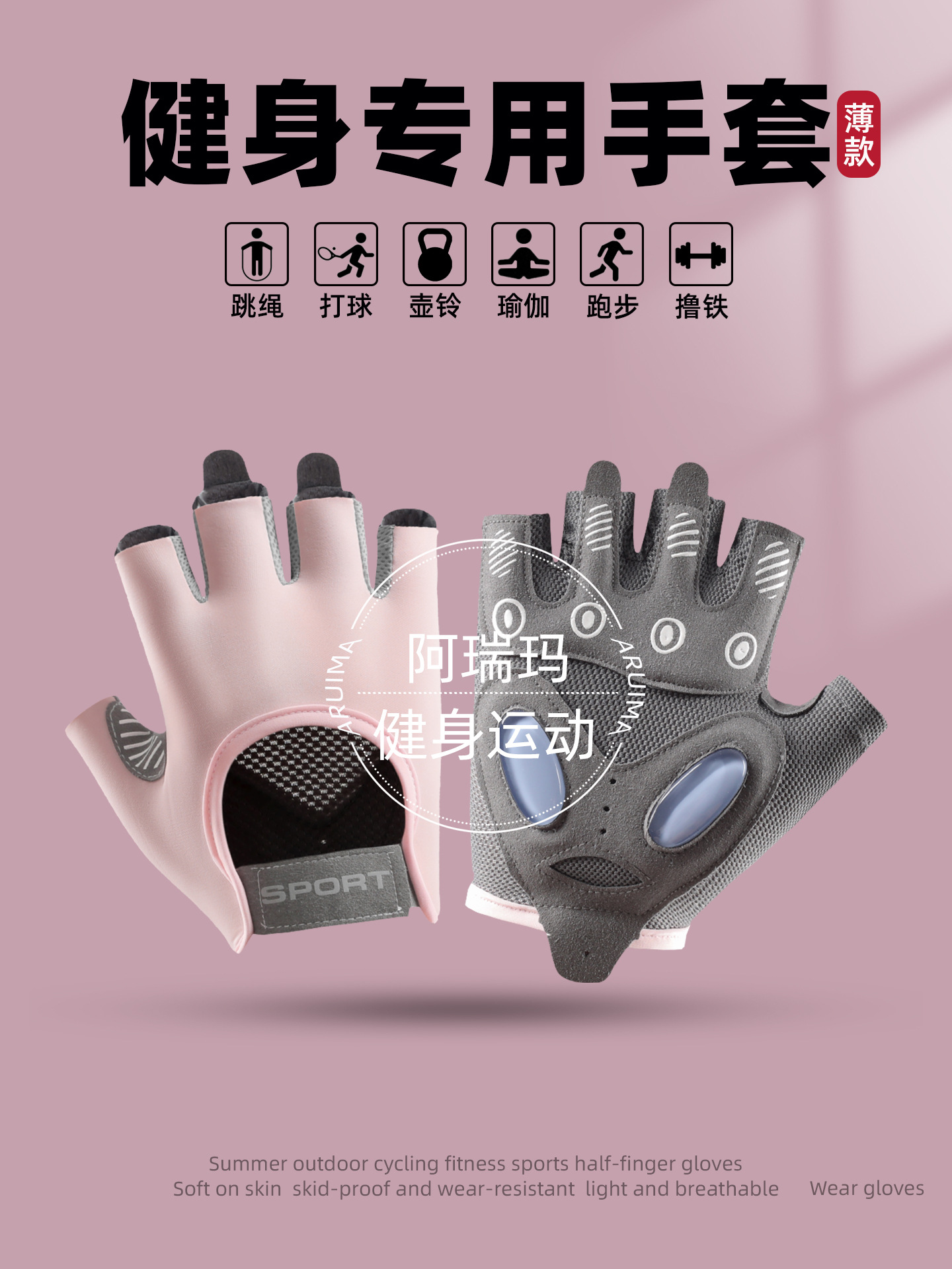 健身手套女薄壶铃哑铃器械训练撸铁防滑防起茧男硬拉单杠运动骑行
