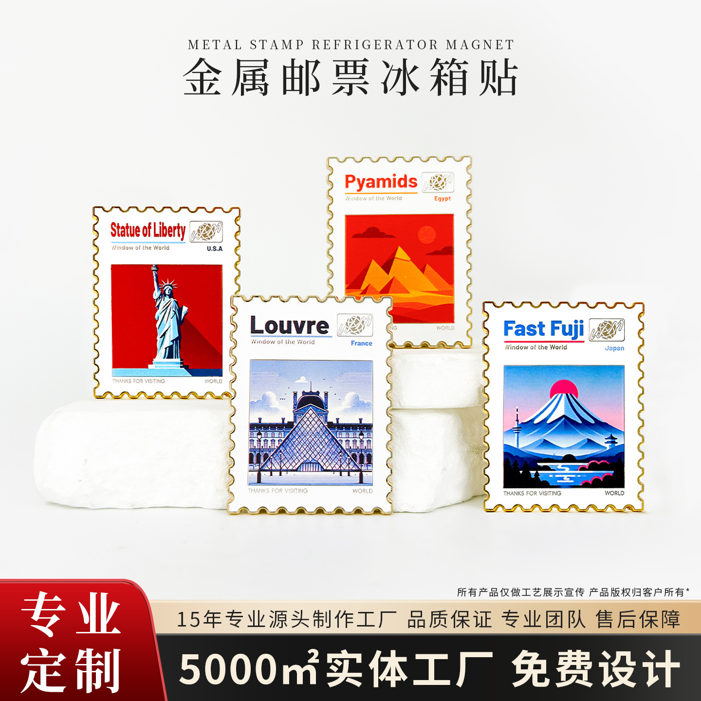 金属烤漆珐琅创意邮票冰箱贴磁吸文创冰箱贴旅游城市创意礼品