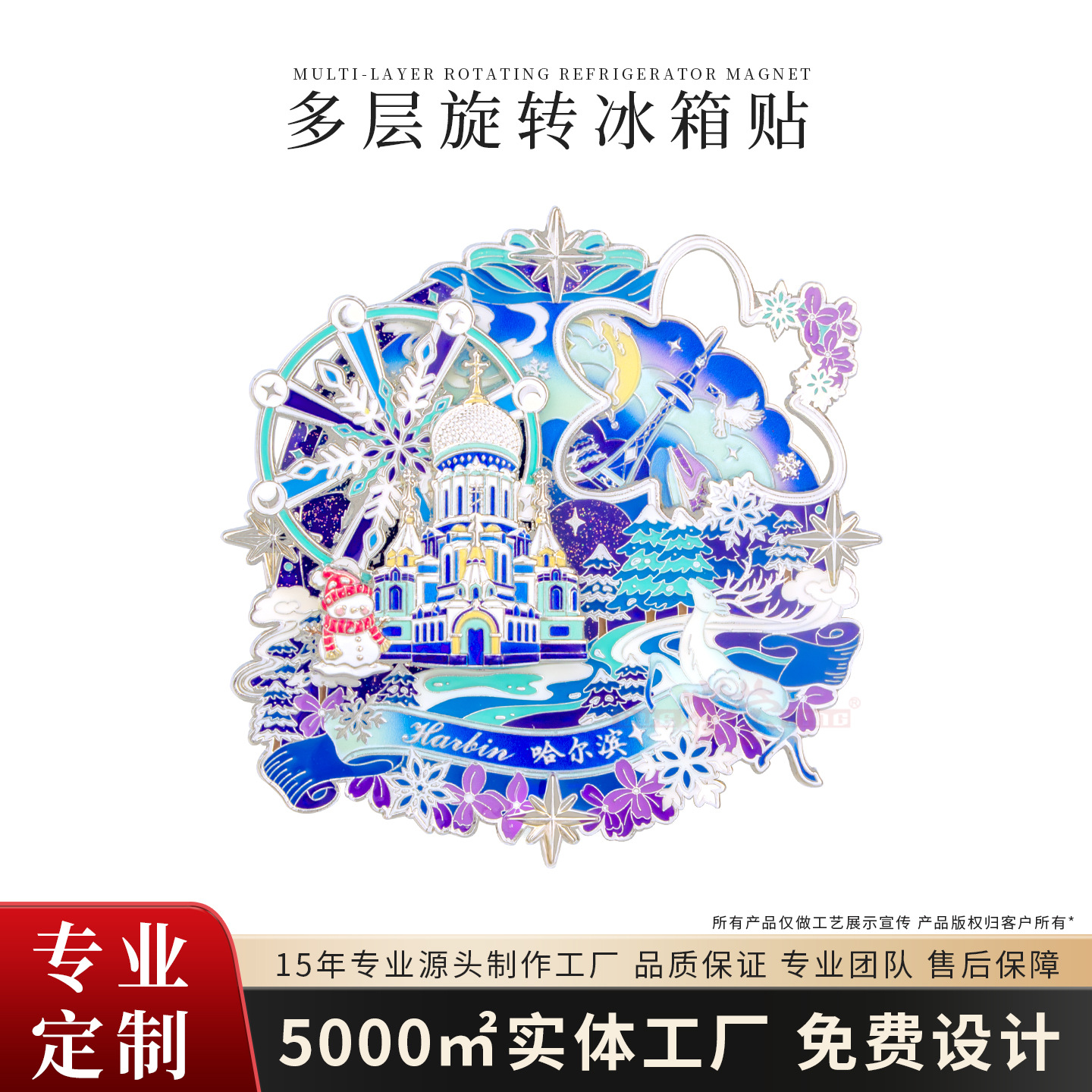 金属冰箱贴定制旋转烤漆珐琅城市景区旅游企业纪念品磁吸定做厂家