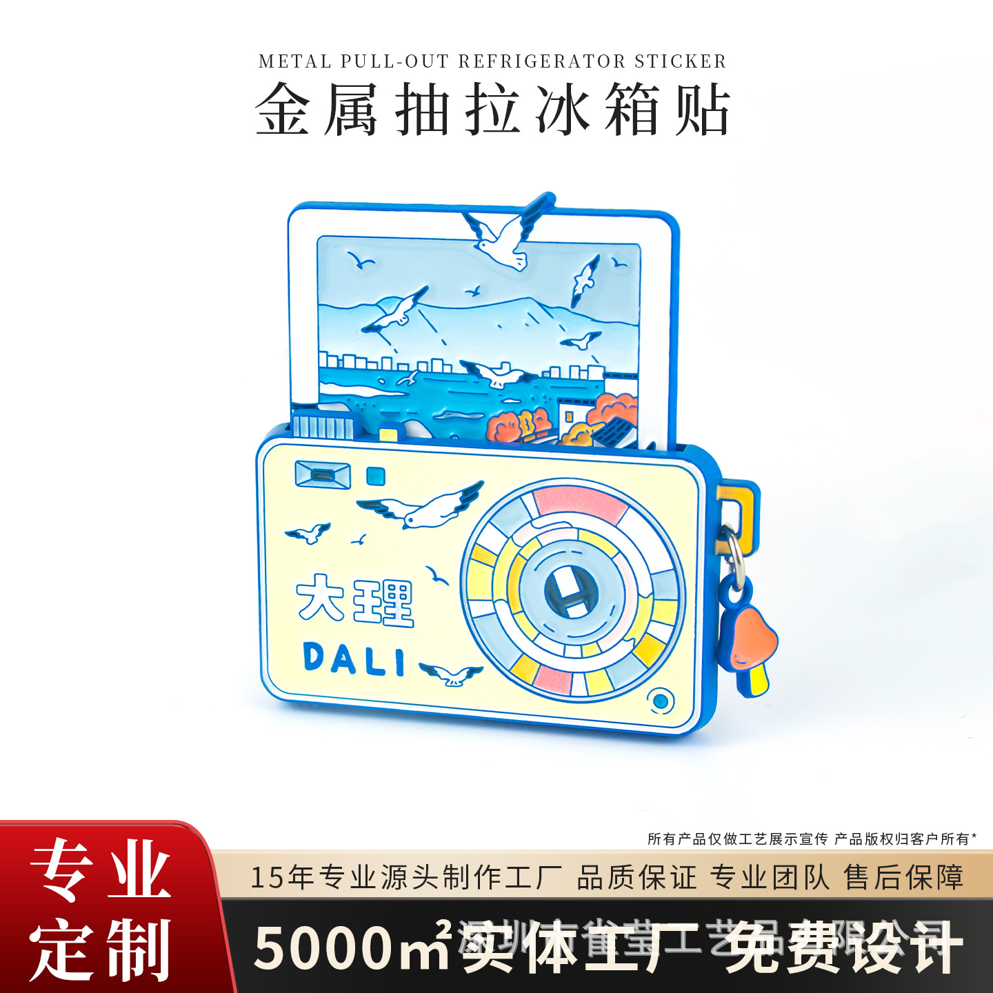 金属烤漆抽拉冰箱贴定制景区博物馆文创相机可抽拉创意冰箱贴定制