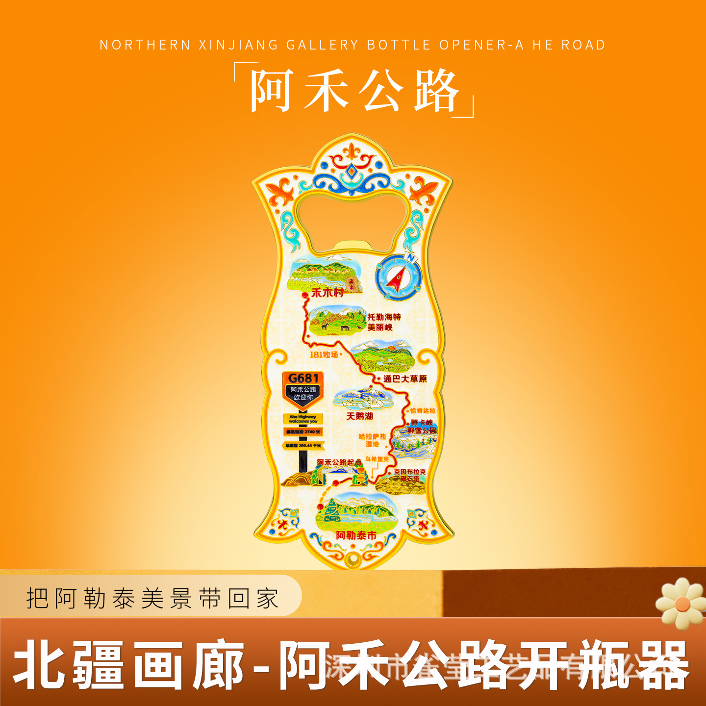 阿禾公路开瓶器冰箱贴金属磁吸啤酒起子新疆纪念品文创伴手礼