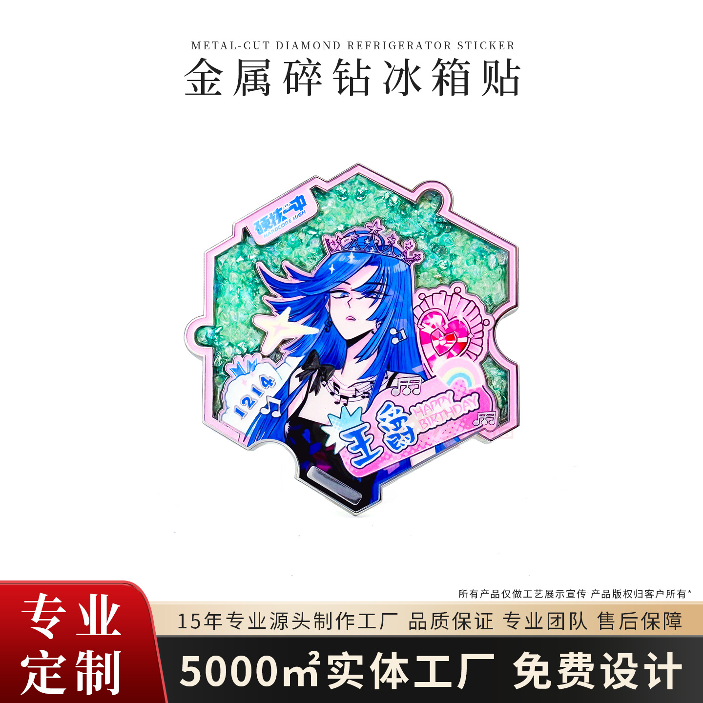 联名碎钻金属冰箱贴定制动漫IP联名金属烤漆UV企业logo纪念冰箱贴