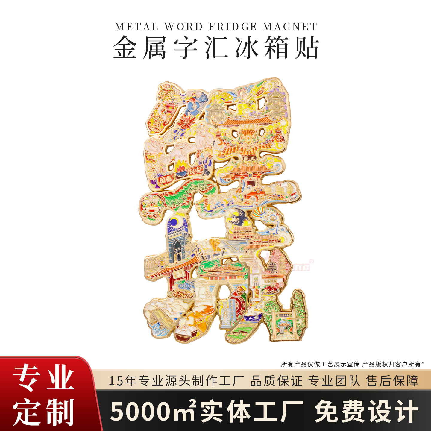 城市创意字绘文字金属冰箱贴定制旅游景区博物馆文创礼品金属磁吸
