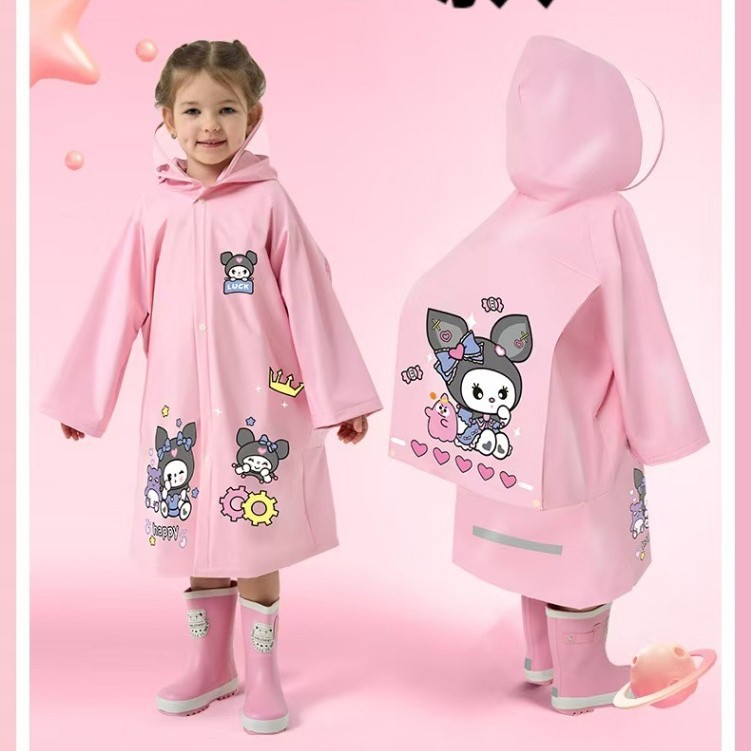 LAbubu儿童雨衣TPV材质超大书包位萌娃大童小童宝宝专属全身雨披