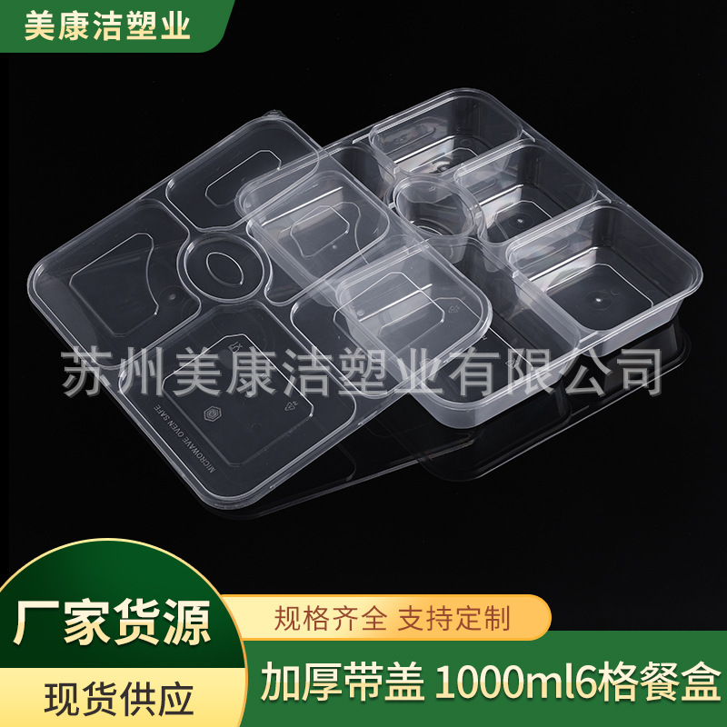 一次性注塑锁扣六格餐盒大容量外卖打包盒可微波加热冷藏微波盒