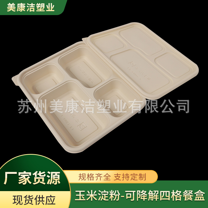 一次性玉米淀粉可降解四格餐盒外卖打包可微波加热冷藏环保可降解