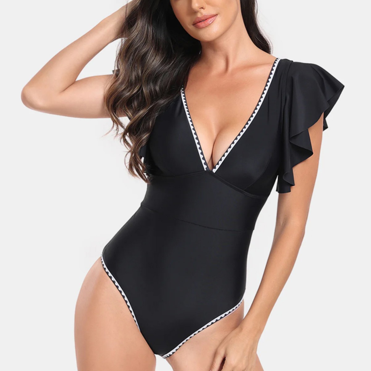 2025新款跨境连体泳衣女欧美荷叶花边性感比基尼泳装外贸厂家批发