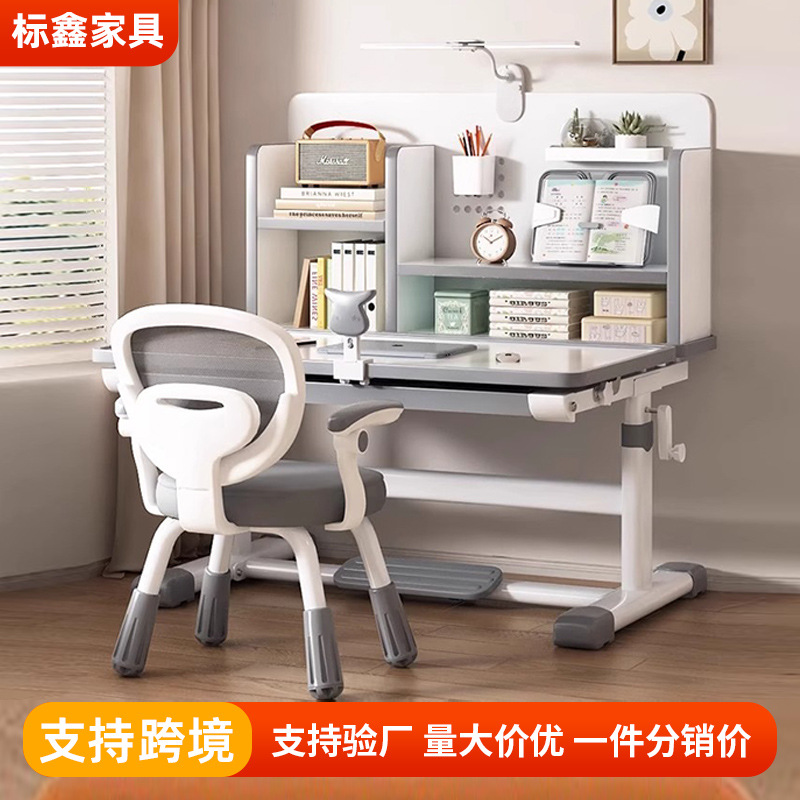 书柜一体作业桌椅套装儿童学习书桌小学生家用升降写字用桌子厂家