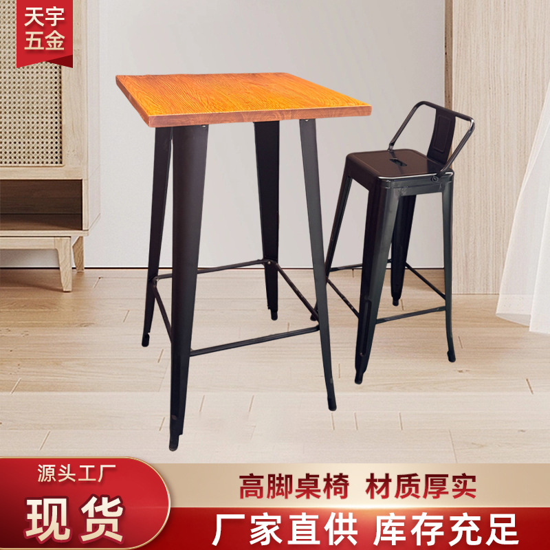 铁艺吧台桌椅创意餐厅高脚桌家用靠墙高桌工业风高脚复古金属桌子