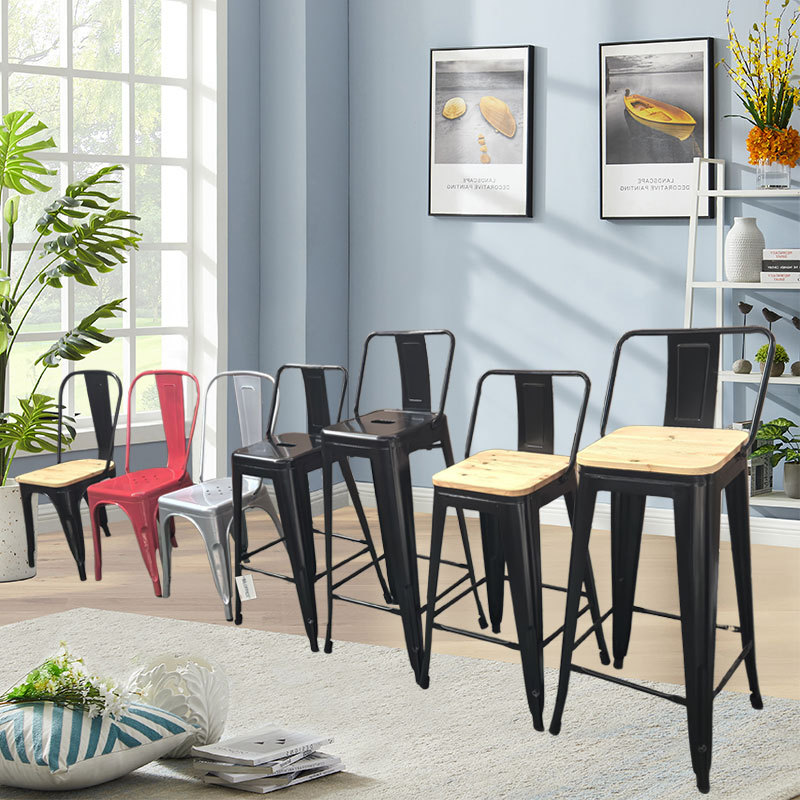 铁艺餐椅酒店金属吧台椅餐厅铁皮等位椅家用酒柜高脚凳户外靠背椅