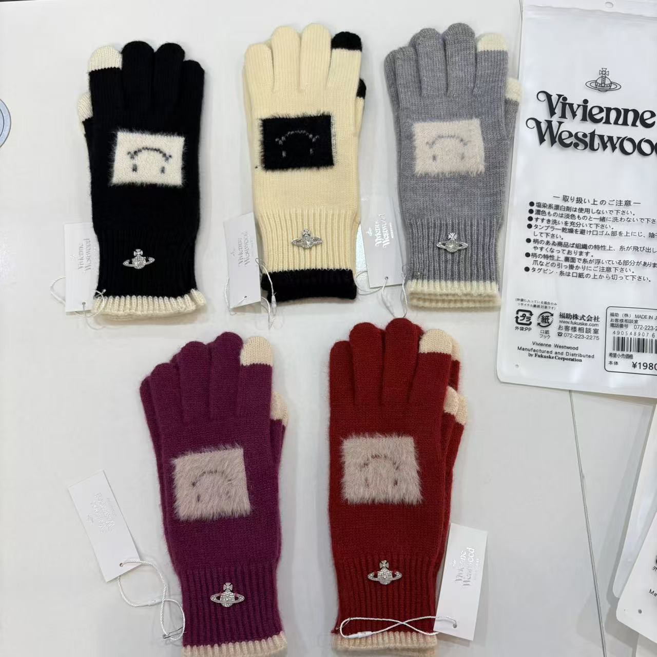 西太后女士渐变色针织分指手套女秋冬五指手套纯色学生百搭手套
