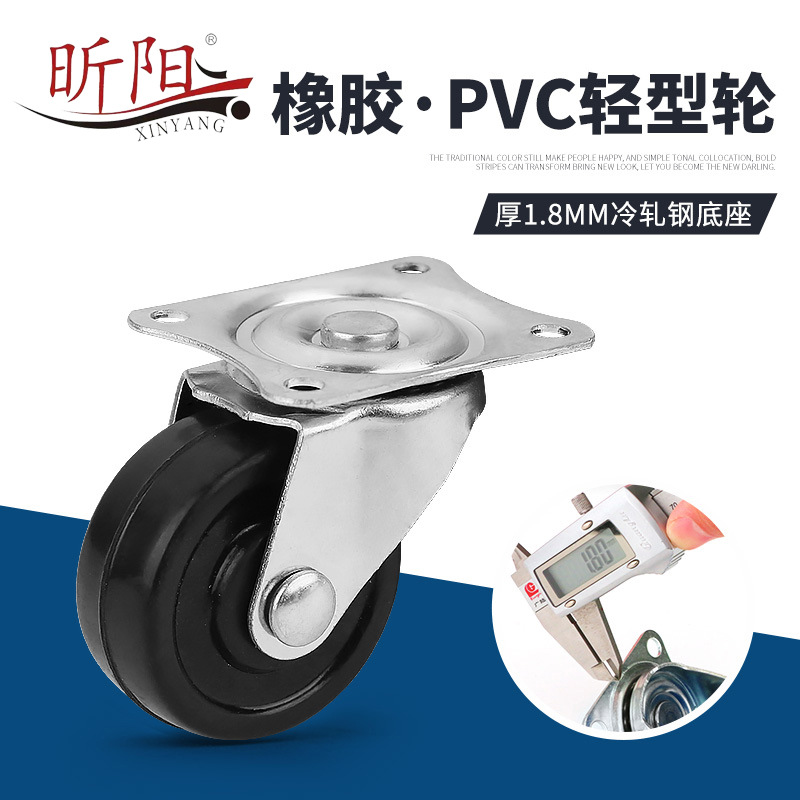 1寸-3寸pvc橡胶定向黑色万向刹轮手推车轮子平板车家具脚轮批发