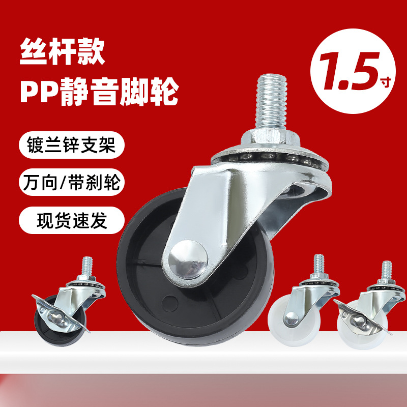 1.5寸丝杆万向轮带刹脚轮PP静音脚轮黑色白色转动顺畅轻型脚轮