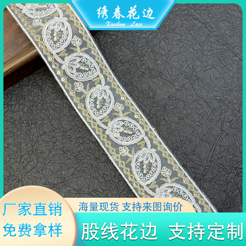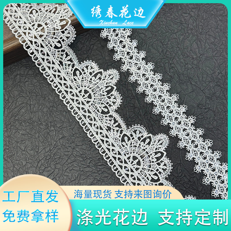 新款高档亮片刺绣 单边蕾丝花边镂空复古女装婚纱礼服配饰DIY手工