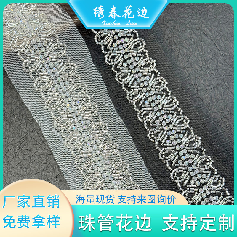 热销爆款 小香风珠管花边 服装辅料手工DIY领口袖口装饰条码花边