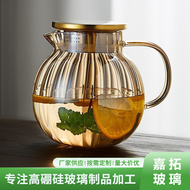 玻璃凉水壶兰陵壶家用客厅待客果汁冷饮琥珀色高硼硅玻璃凉水壶