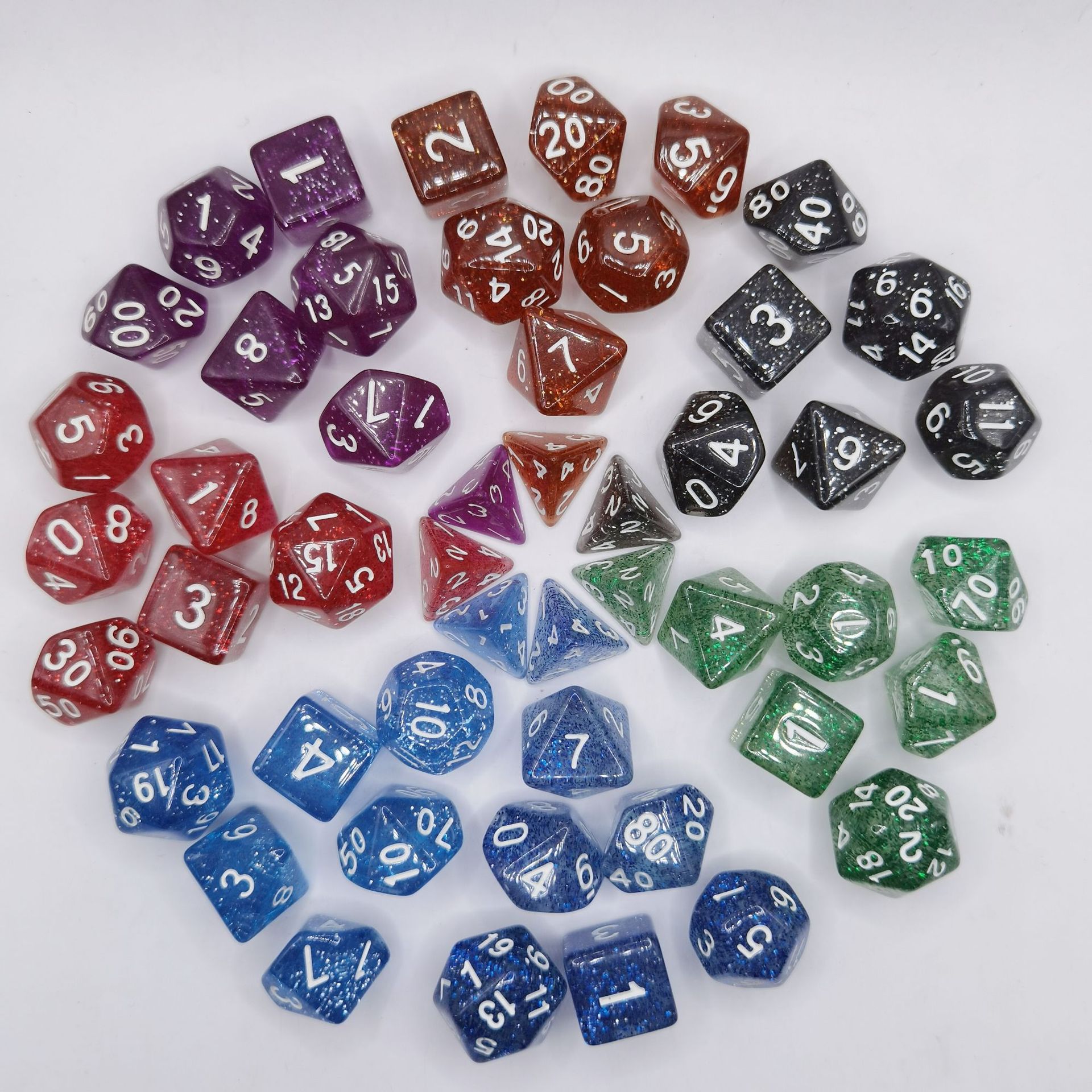 现货透明闪点多面骰子套装桌游跑团七粒一套数字骰子游戏骰子组合