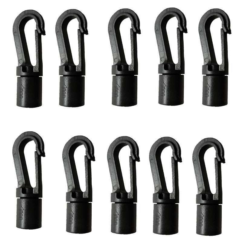 供应户外游船皮划艇配件黑色注塑弹力绳用10个包6毫米孔 有档挂钩